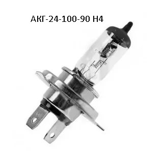 Галогеновые лампы АКГ 24−100+90 н4 устанавливаются в фары головного света (ближний + дальний свет).