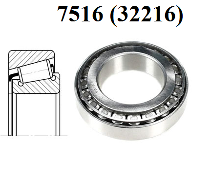 Подшипник 7516 (32 216) заднего, среднего моста КАМАЗ, ЗИЛ-130, МАЗ-5440, 643 068; КПП ЯМЗ-238ДЕ размер 80×140×35,25